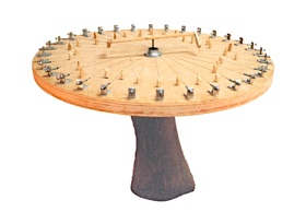 造形作家の松本秋則は1981年から音の出る作品(音具・サウンドオブジェ)を創作してギャラリー、美術館、野外など様々な場所で自動演奏による音のサウンド・インスタレーションを展示する。作品の素材は主に竹を使用し、演奏の動力は室内なら人力や電力を屋外なら風や水や太陽などの自然エネルギーを利用する。サウンド・オブジェによるアコーステックなライブ演奏。